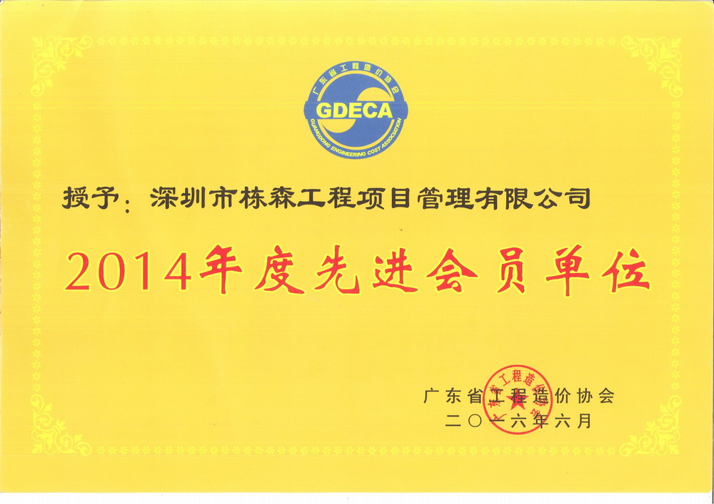 廣東省工程造價協(xié)會2014年度先進會員單位